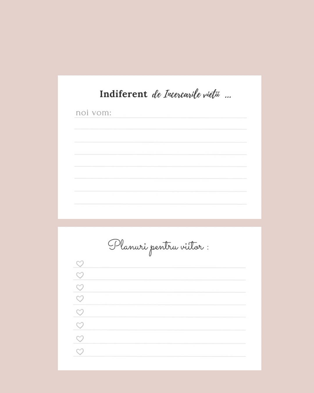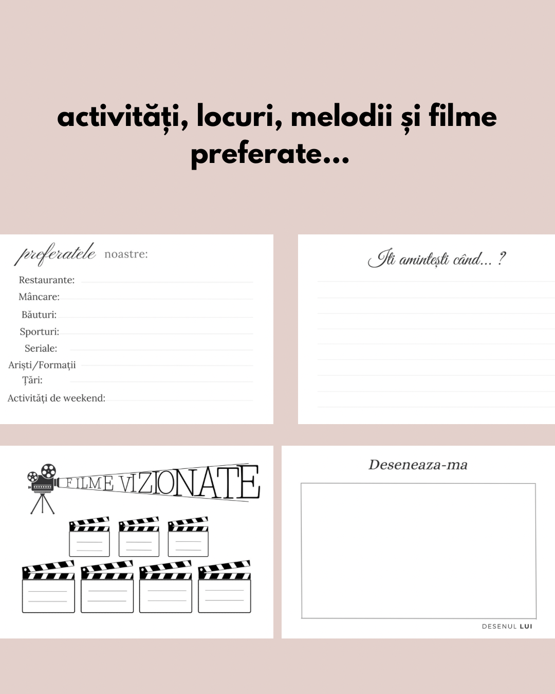 Povestea noastră este un album care vă permite să surprindeți povestea voastră de dragoste de la momentul primei întâlniri până acum. Marchează cele mai memorabile momente, locuri, filme și melodii.