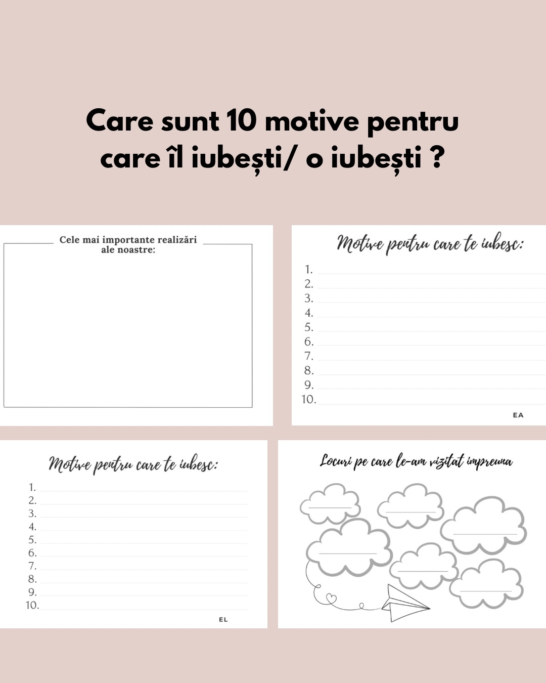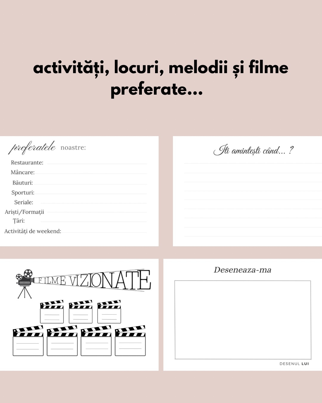 „Povestea Noastră” este un album unic în care puteți să păstrați cele mai frumoase momente ale relației voastre — de la cum v-ați cunoscut, la planurile pentru viitor.