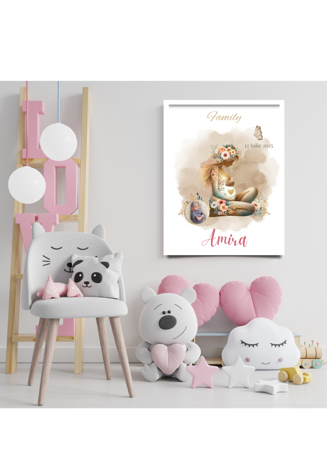 Imortalizează acest frumos moment cu tabloul personalizat Baby Girl, acesta va ilustra data, luna, numele si ecografia bebelusului.