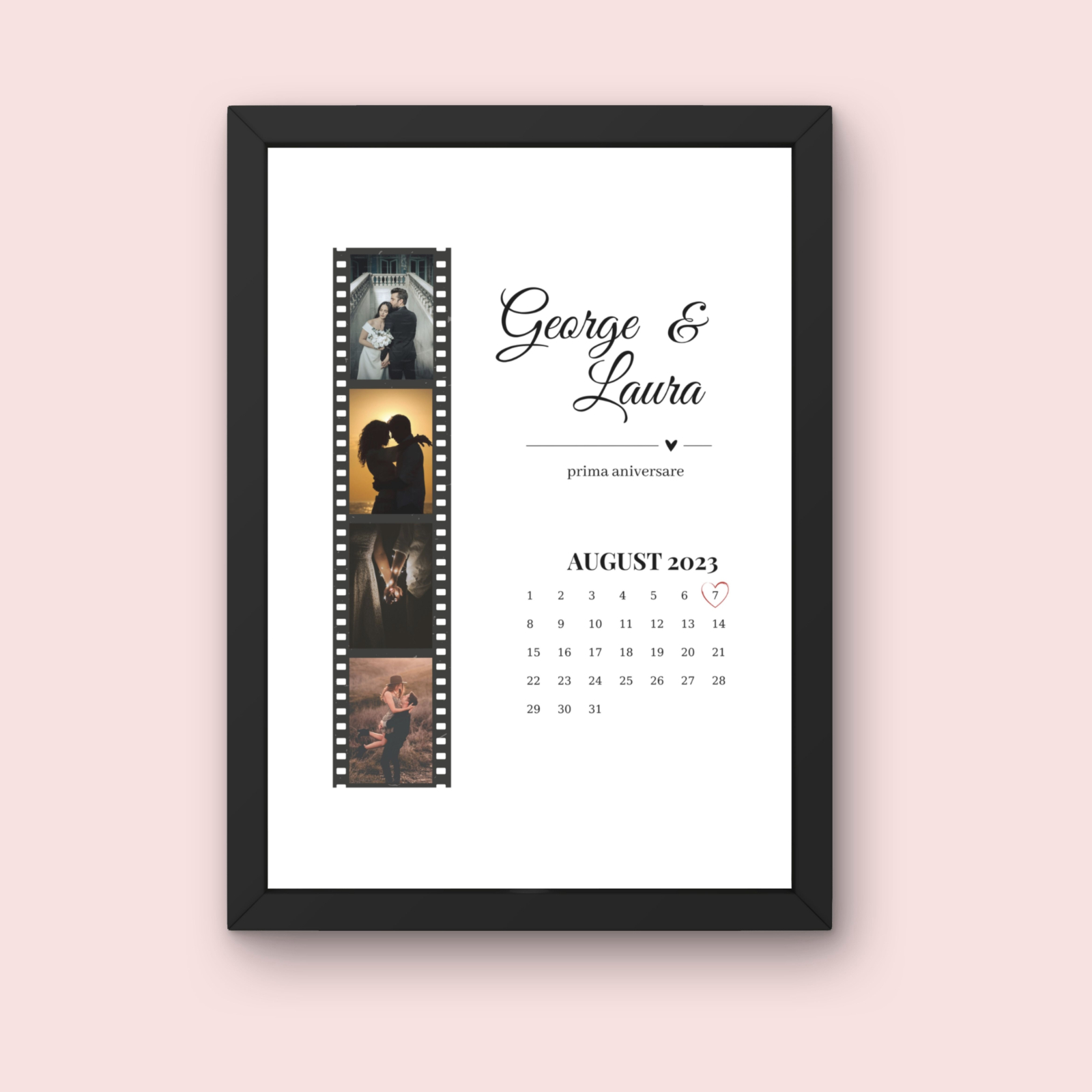 🎁 Tablou Personalizat cu Calendar și Fotografii – Cadoul Perfect pentru Prima Aniversare ❤️